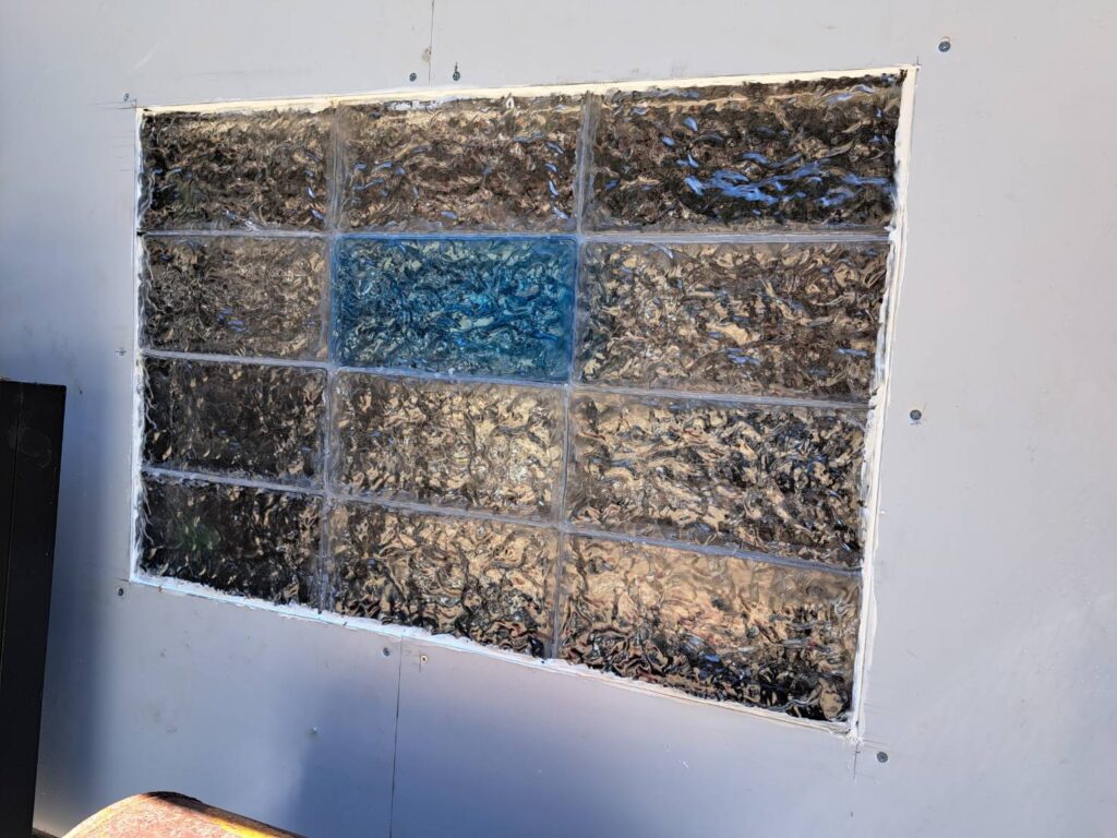 窓下の中央にあるのがプラスチックブロックを使ってます。